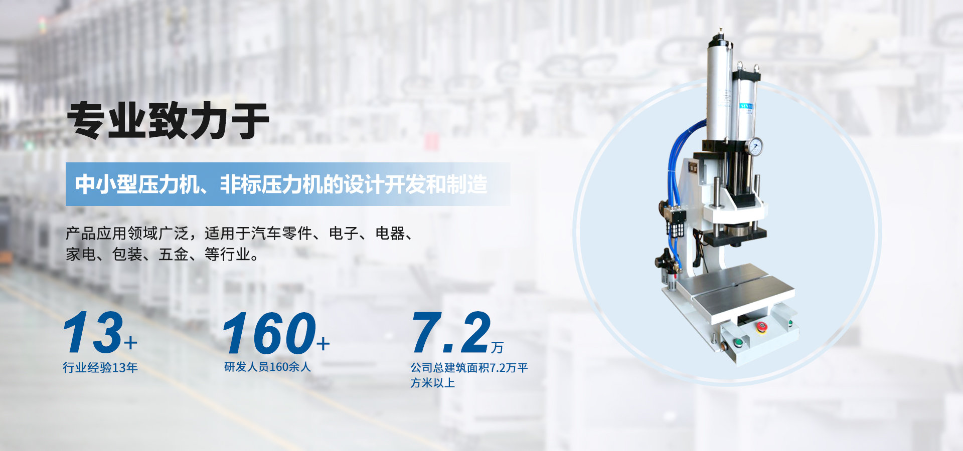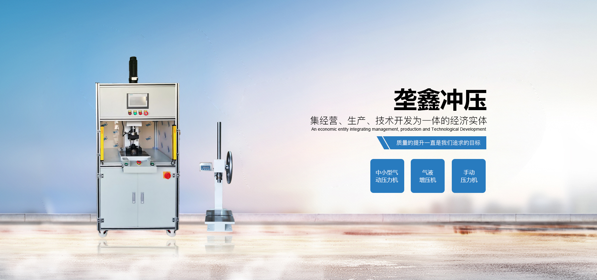 煙臺壟鑫沖壓設(shè)備有限公司是集經(jīng)營、生產(chǎn)、技術(shù)開發(fā)為一體的經(jīng)濟(jì)實(shí)體,專業(yè)致力于中小型壓力機(jī)、非標(biāo)壓力機(jī)的設(shè)計(jì)開發(fā)和制造。在引進(jìn)德國、日本等國家先進(jìn)的鉚壓控制技術(shù)及機(jī)器設(shè)計(jì)理念的基礎(chǔ)上,結(jié)合相關(guān)行業(yè)的實(shí)際需要,開發(fā)出各種臺式、落地式氣動壓力機(jī)、手動壓力機(jī)、氣液增壓機(jī)、氣液增力缸、旋鉚機(jī)、無鉚釘鉚接機(jī)等鉚接設(shè)備。產(chǎn)品應(yīng)用領(lǐng)域廣泛,適用于汽車零件、電子、電器、家電、包裝、五金、等行業(yè)。公司視質(zhì)量為生命,并一貫遵循對每一臺產(chǎn)品負(fù)責(zé),對每一位用戶負(fù)責(zé),真誠為您服務(wù)。 自公司成立以來,秉承“誠信,創(chuàng)新,專業(yè)”的經(jīng)營理念,以優(yōu)質(zhì)的產(chǎn)品,完善的售后服務(wù),樹立良好的品牌形象,服務(wù)于廣大新老顧客。我們竭誠于各位同仁攜手并進(jìn),共謀發(fā)展。
